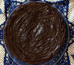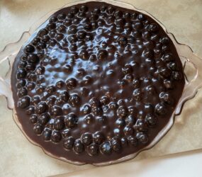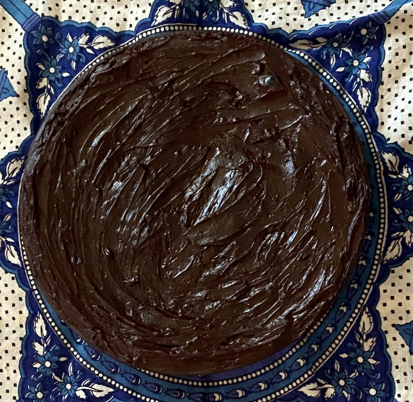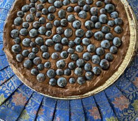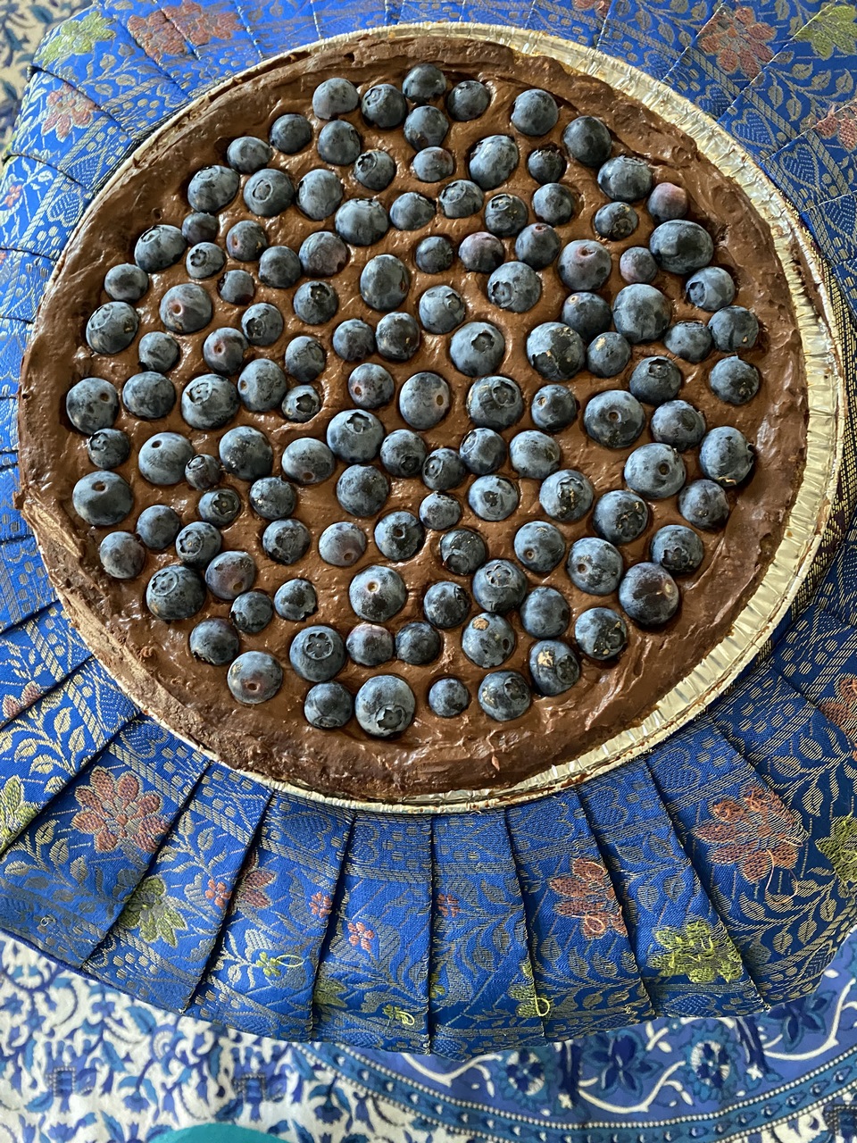 A surprise visit greeted with a surprise pie.” Superfood prasadam pie, gluten free, vegan, zero sugar added, made only with maple syrup and dates as sweetener, and always “don’t panic its organic”, our trademark prasadam.